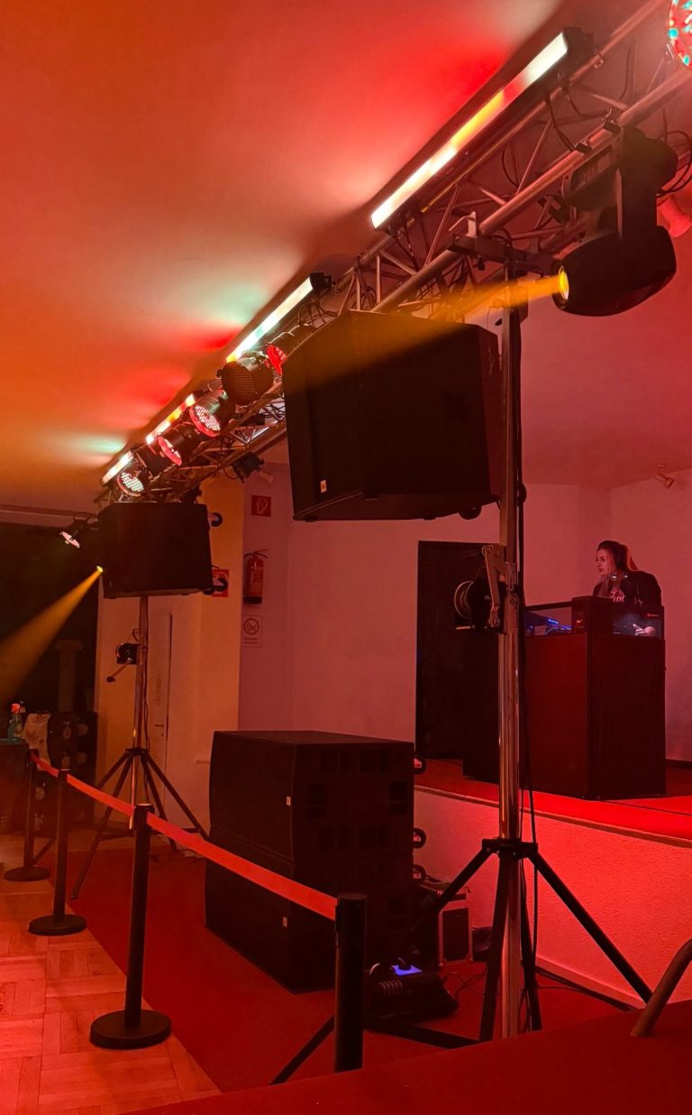 - Lichttechnik: Von der Bühnenbeleuchtung bis zur Ambientebeleuchtung – wir sorgen für das perfekte Licht, das Ihre Veranstaltung in Szene setzt.